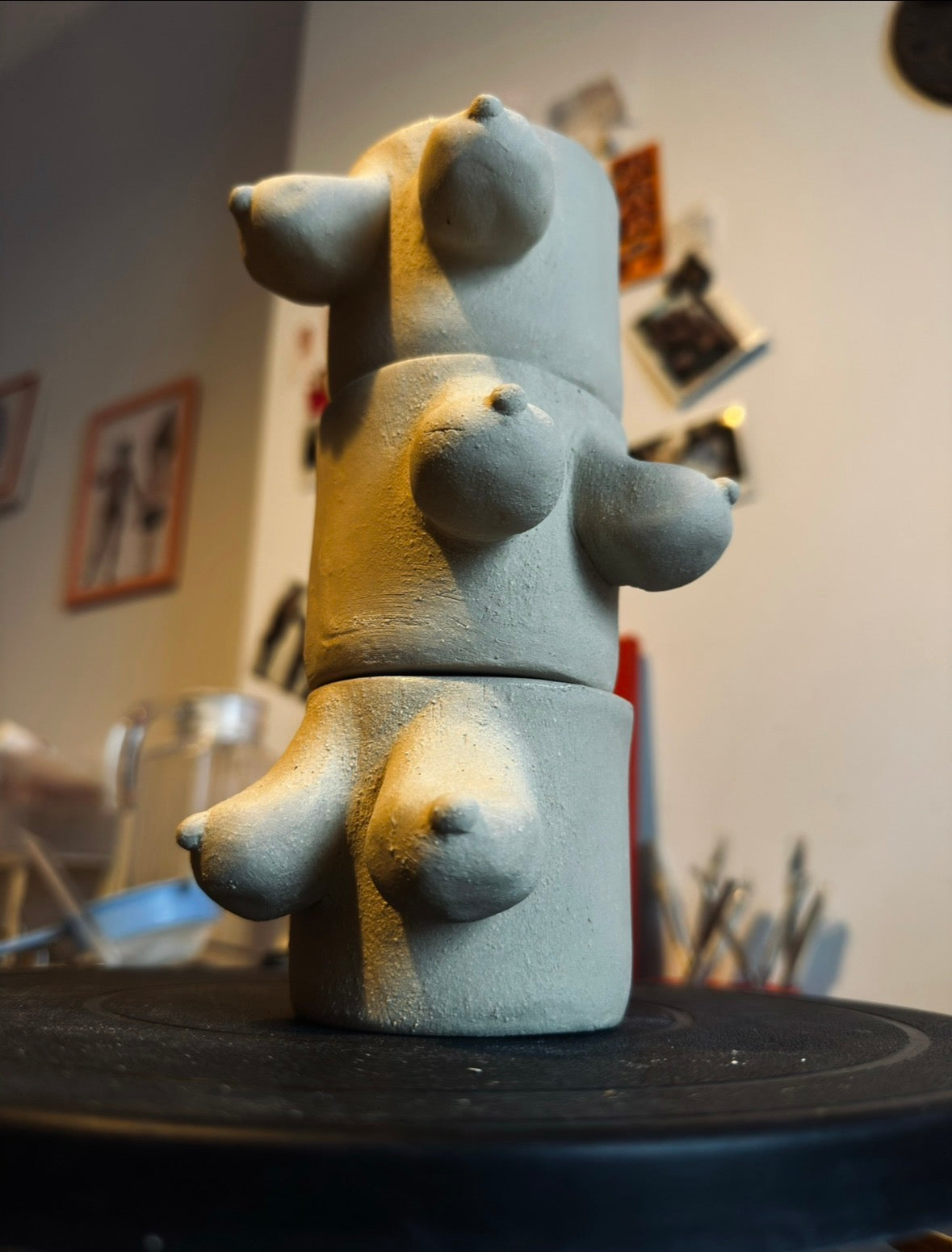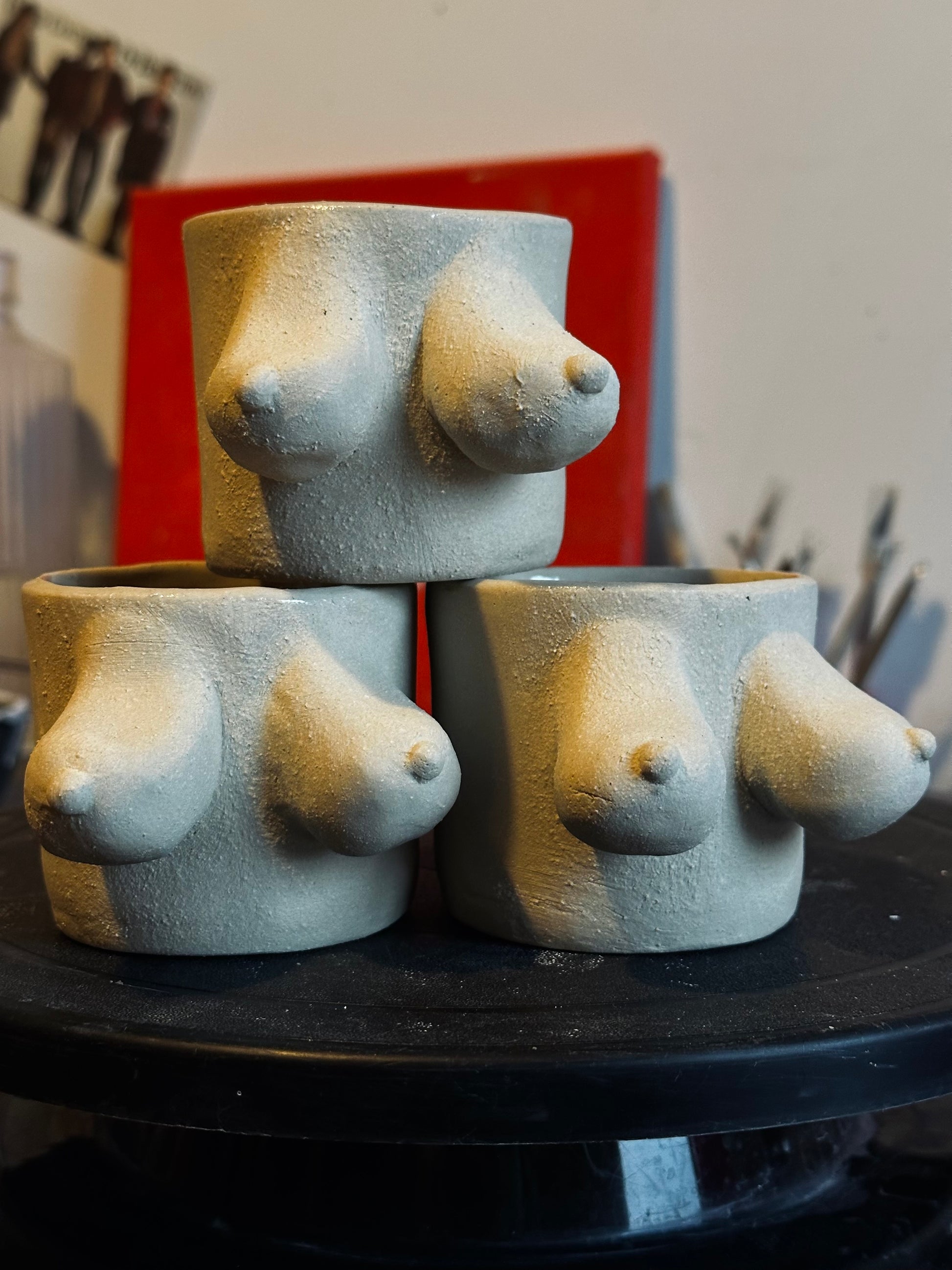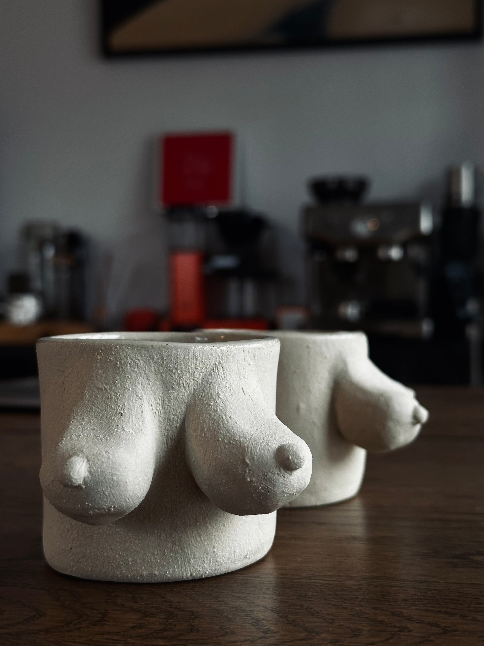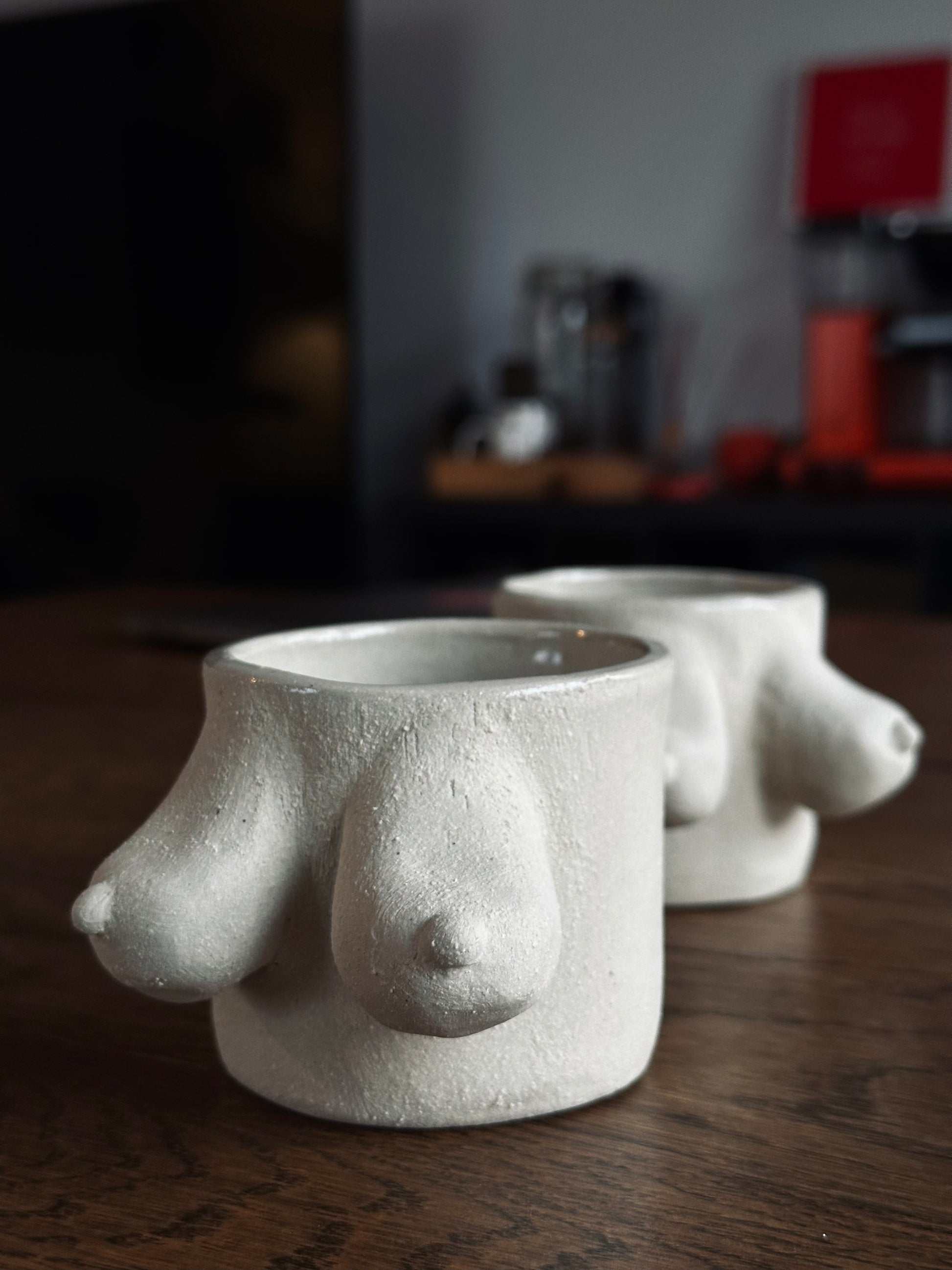 Enjoy a delightful drinking experience with its feminine figure and ergonomic grip. Carefully handcrafted from white stoneware clay with chamotte. Each piece may show slight variations and minor imperfections due to its handmade nature.