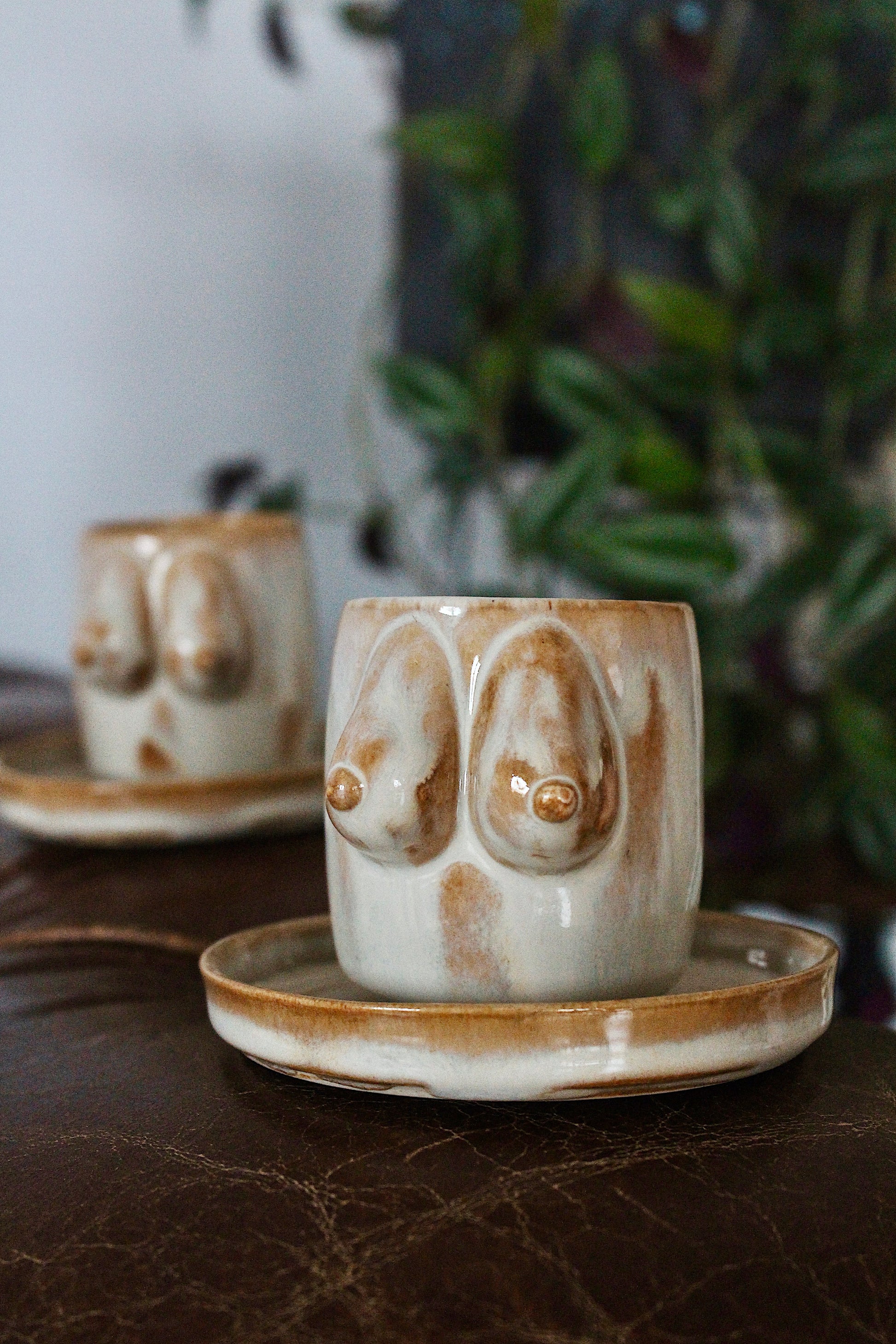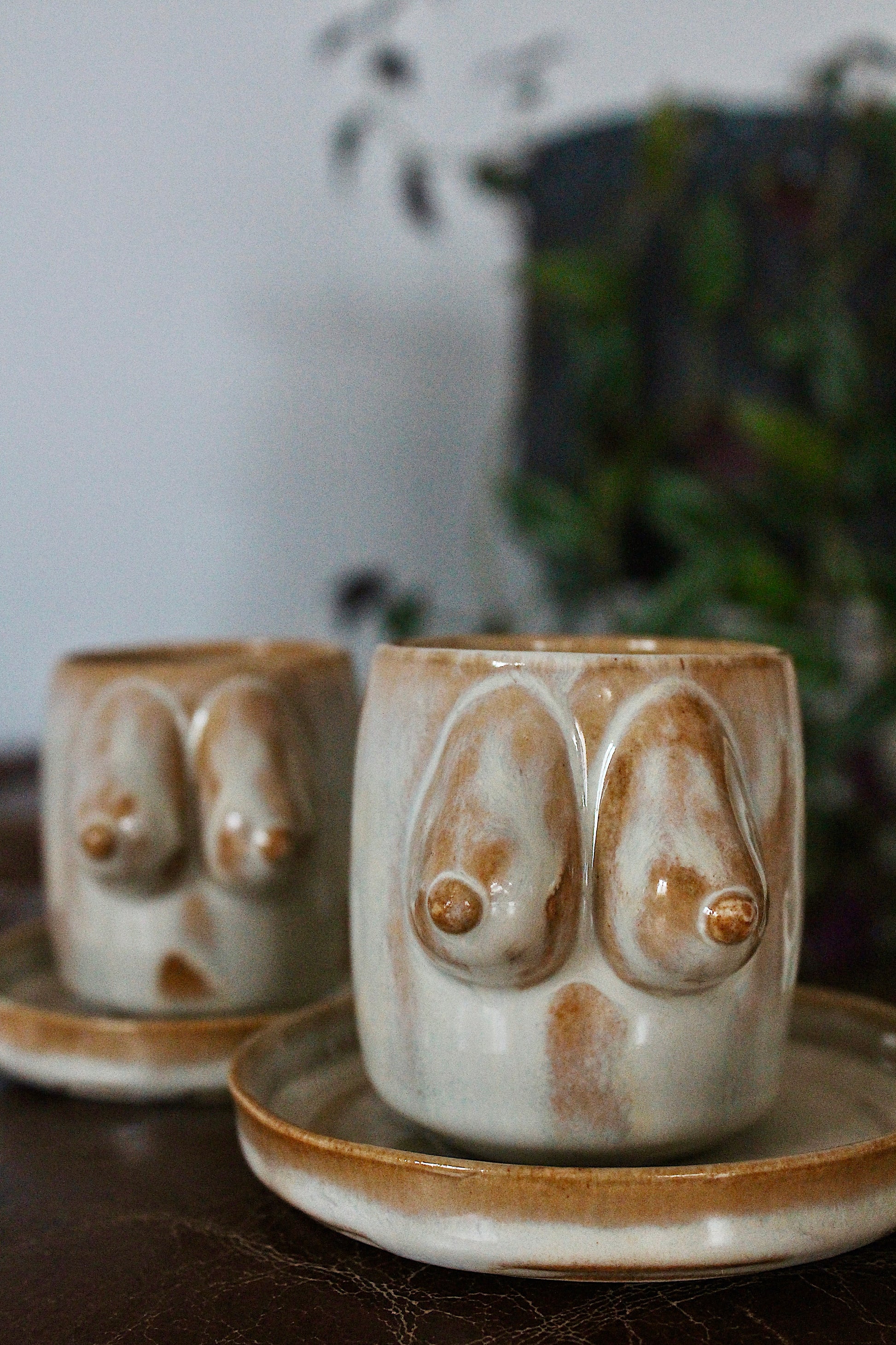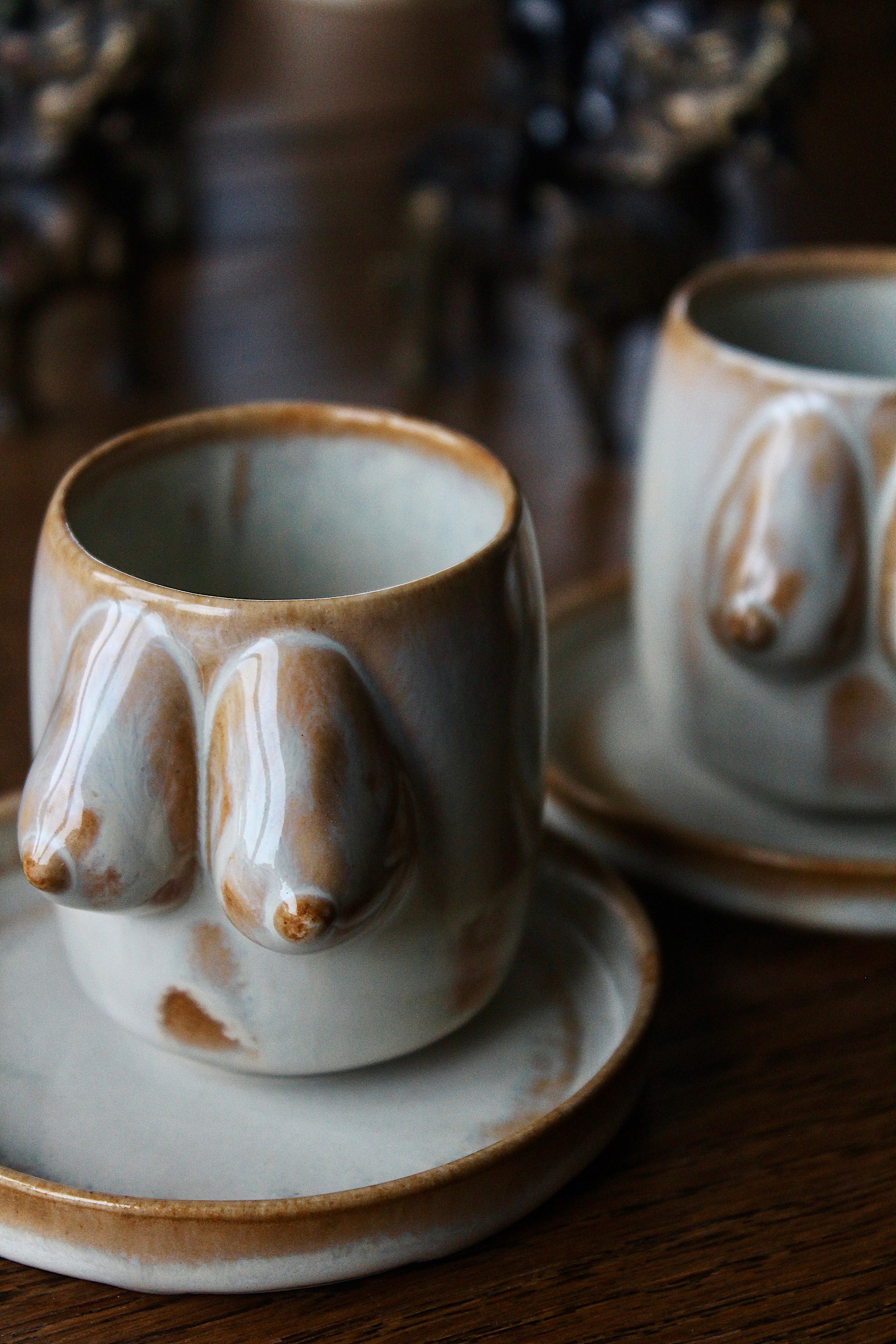 Her biri elle şekillendirilmiş, kulpsuz ve göğüs detaylı özel bir tasarımdır.